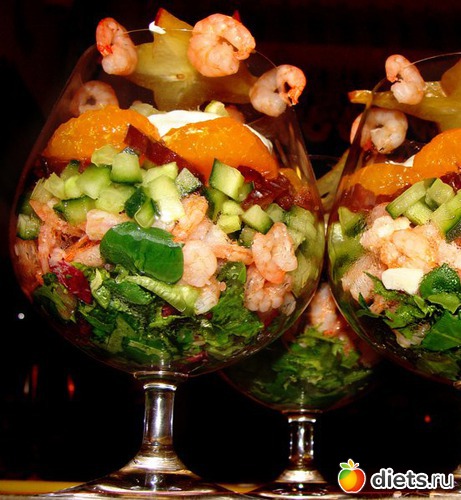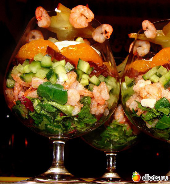 украсить креветками, дольками карамболы или лимона (необязательно).