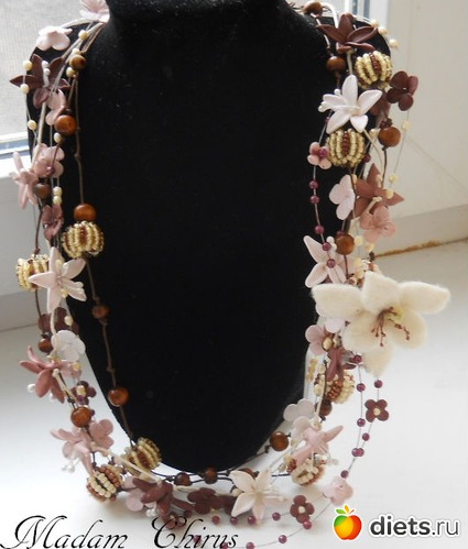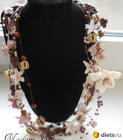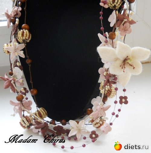 Микс из пластики ( цветы ручной работы), валяния (валяный цветок ручной работы), дерева. Получилось очень мягкое женственное украшение.