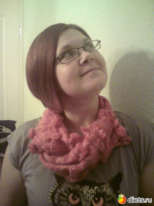А вот моя кума Танюша, которая сегодня отмечает свой День Варенья и получила шарфик в подарок. Именинница очень довольна, чему я несказанно рада.