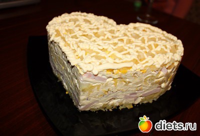 Слоеный салат с ветчиной и ананасами к праздничному столу.