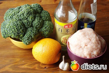 Брокколи разрезаем на соцветия. В сотейник добавляем еще немного масла, кладем мелко нарубленный чеснок и белые части лука. Жарим 30 секунд.