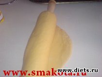 6. Раскатываем скалкой тесто и накатываем на скалку.