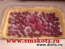 8. Выкладываем вишни и посыпаем сахаром.