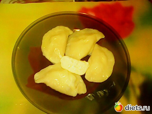 Потом доели варенички с творогом - 4 шт и капелька масла, большая часть которого так и осталась на тарелке.