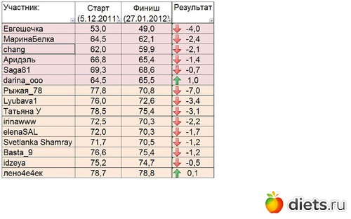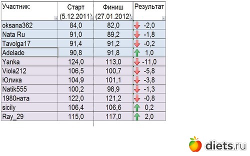 ). Еще у нас был небольшой тайм-аут на Новогодние и рождественские праздники... Не все публиковали отчеты о выполнении задания, но подсчет результатов я делала исходя из отметок веса в клубе, т. к. изначально у нас был уговор - отметку в таблице ставить, только если задание выполнено.