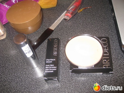 Еще купила помаду, крем-пудру и консилер (или как его он там называется, который дефекты на лице замазывает?)