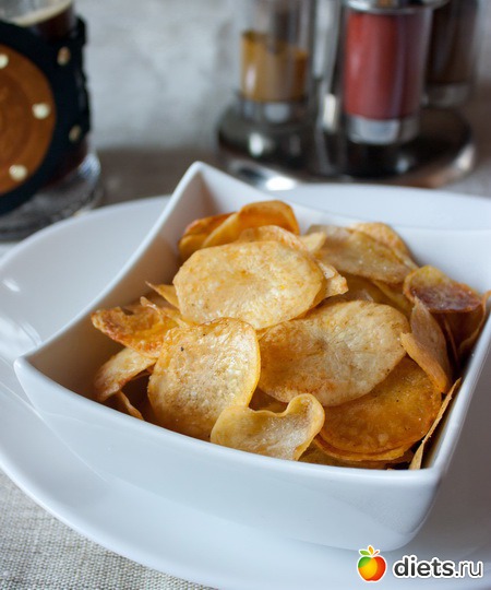 Очень многие любят картофельные чипсы. Но готовый промышленный продукт, как правило, содержит много жира, поскольку жарится во фритюре. Домашние чипсы, приготовленные в духовке, в этом плане гораздо менее вредны. Но по вкусу/текстуре от промышленных все же немного отличаются.