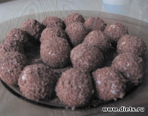 Скатываем из этой массы вот такие шарики, обваливаем их в тертом шоколаде