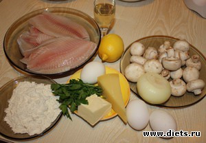 Затем кладем в форму для запекания, сбрызгиваем вином и лимонным соком и отправляем на7-8 минут в разогретую до 190 градусов духовку.