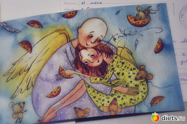 Я желаю тебе счастья! Надежного, как ангелы-хранители, и вездесущего, как маленькие мышки!". И рукописное пожелание. Тоже чудесное.