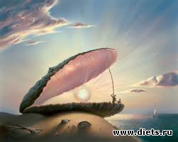 Закрывай глаза. На вдохе ты опускаешься на дно моря (озера, реки ит.д.) и видишь прекрасную раковину. Ты подплываешь к этой раковине и открываешь ее. Внутри нее прекрасная жемчужина твоей женской привлекательности. Ты берешь эту жемчужину и кладешь себе в маточку и чувствуешь, как она наполняет тебя своим мерцанием, делая тебя привлекательной. И, наполненная, ты устремляешься к поверхности, навстречу солнцу, и словно богиня любви Афродита, рождаешься внов из пены морской. Но это рождается новая женщина, умеющая быт спокойной, как в море штиль, и игривой, как набегающий прибой, умеющая быть мощной и сметающей все на своем пути, как волна цунами, и быть мягкой и успокаивающей. Умеющая быть разной, но всегда остающаяся собой. И эта женщина выходит на морской берег, готовая дарить и наполнять. Жемчужина - символ женской энергии.