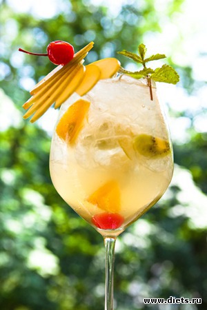 Осталось украсить: трубочка, зонтик и ломтик апельсина или лимона на край стакана.