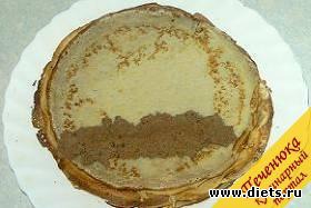 11) Оставить два блина, а на остальные выложить по ложке начинки и завернуть в трубочки.