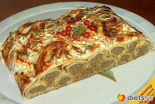 Оригинальный рецепт приготовления блинного пирога с печеночной начинкой. Очень нежный на вкус и красивый в разрезе пирог подойдет не только на каждый день, но и может стать украшением стола для праздника.