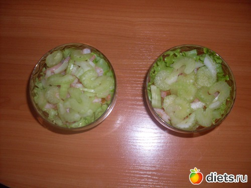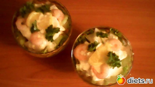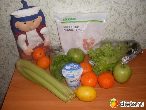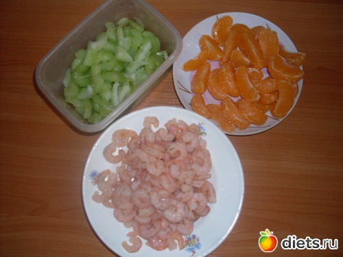Представляю вам салат КРЕВЕТКИ В РАЮ!!! Этот салат обладает удивительным вкусом сладких мандаринов, кисленького яблочка, пикантного сельдерея, ну и конечно креветок!!!