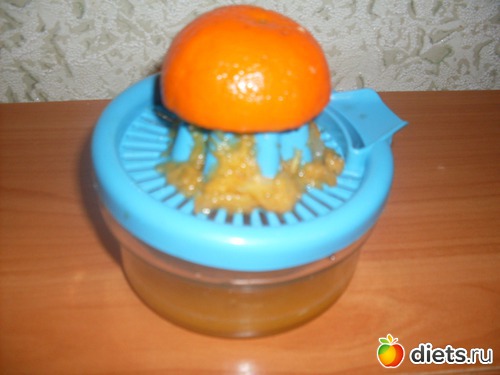 далее из двух мандаринов выжимаем сок и смешиваем его с йогуртом