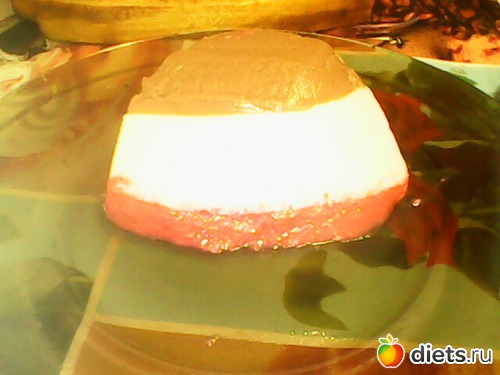 Только слои у меня получились наоборот, просто миска была не прямая, а с расширением, ну да вкус от этого не меняется. Девочки, я посчитала калории, смотрите: