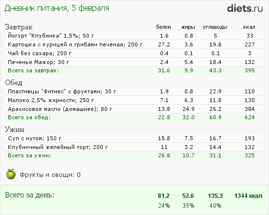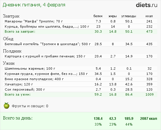 Вот табличка питания за сегодня: