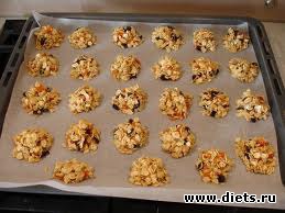 Затем добавьте к готовой смеси два вида геркулеса, а также кунжутные семечки и все тщательно перемешайте до образования плотной однородной массы. Разогрейте духовку до температуры 180°С. На противень положите пергамент или бумагу для выпекания. Выкладывайте готовое тесто столовой ложкой на противень небольшими кружочками, оставляя достаточно места между печеньями.