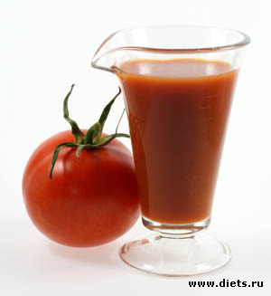 Помидоры и томатный сок очень востребованы среди желающих избавится от лишнего веса, так как их калорийность всего-то — 25 и 20 ккал/100 г. Они имеют свойство восстанавливать нарушения обменных процессов, «притуплять» чувство голода и создавать эффект быстрого насыщения организма.