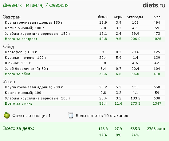 Калорийность продуктов