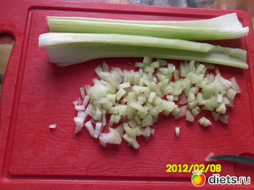 Еще взяла 200 грамм стеблей сельдерея, почистила их и нашинковала