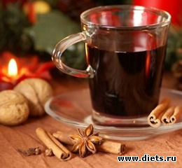 Для приготовления одной порции глинтвейна необходимо красное сухое вино, около 100мл. Любой женский журнал вместе с женскими и кулинарными советами наверное содержит рецепт этого замечательного напитка. Вино заливают в подходящую емкость (например, в турку) и ставят на медленный огонь. Ни в коем случае нельзя доводить жидкость до кипения – она должна только согреться. Нагрев вина прекращают, когда на его поверхности образуется белая пенка. В этот момент в напиток добавляют пряности: бутончик гвоздики, дольку цуката, пару горошин перца и чайную ложку меда.
