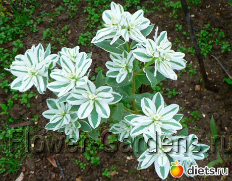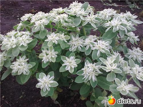 Выросли эти кусточки! Что стало творится! Такая красота!!! Это даже не цветы, а листочки стали белеть. Кусты выросли около метра! разрослись как кустарники. И моя старая кривая амбарушка рядом с этими цветами преобразилась в волшебный сказочный домик! Девочки, рекомендую, сажайте не пожалейте!!! Хотя в моем саду и розы, и гладиолусы, и лилии, и другая экзотика, но это!!! Называется "Молочай окаймленный". Жалко летом не догадалась фотографировать, Да, а в срезке стоит месяц!