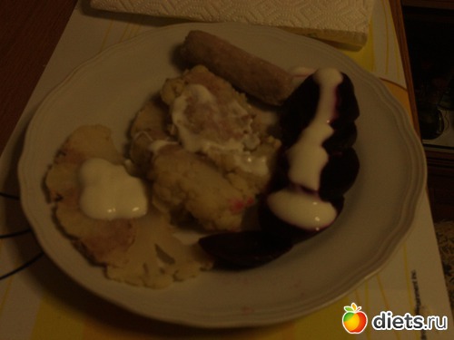 Ужин доедала капусту+свекла отварная (два кулака)+фарш и купат и 1 ст л йогурта (1 кулак)
