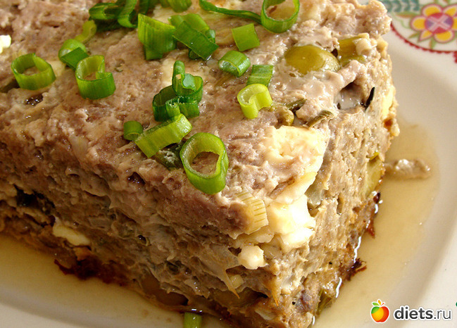 Готовый "хлеб" перевернуть на блюдо, украсить зеленью.