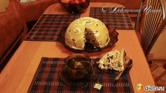 Бисквит спекла сама, вовнутрь добавила бананы, а сверху засыпала шоколадом !!