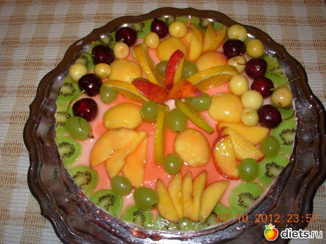 А на самый верх корж из бисквита , когда перевернешь --это будет низ !