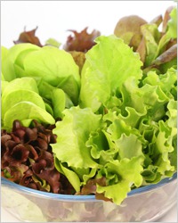 Любимое блюдо людей, употребляющих здоровую пищу, салат: свежий, хрустящий, малокалорийный и богатый жизненно важными веществами. Все зелёные салаты очень полезны для здоровья, так как содержат витамины Е, А, железо, фолиевую кислоту. Витамин А – мощный антиоксидант, необходимый для иммунной системы, хорошего состояния кожи и волос. Улучшает зрение, препятствует преждевременному старению. Витамин Е – борется со свободными радикалами, предохраняет от заболеваний сердечно-сосудистой системы и рака. Железо и фолиевая кислота помогают организму обновлять кровь и извлекать полезные вещества из еды. Включая в рацион зелёные салаты, вы обогащаете свой организм витаминами и минералами и помогаете ему бороться с болезнями.