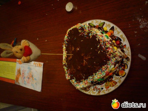 плюс, дело же не в том, чтобы он похудел. дело в том, что я люблю готовить, он любит сладкое. Я вложила в этот тортик душу, и точно знаю, что ему это таки доставит удовольствие. Суть ведь подарка в заботе, не правда ли...?