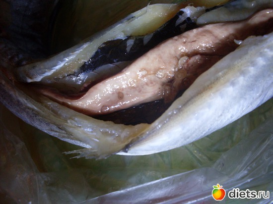 Но до сих пор в семье только Я чищу рыбу и если меня что-то смущает,я её выкидываю, а селедку(целиковую)просто сначала чищу и обязательно замораживаю.Красную рыбу солю только сама!!!