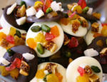 Итак, сухофрукты режем на небольшие кусочки. Шоколад растапливаем в микроволновке, На фольгу маленькими порциями (с монетку) льем шоколад и его посыпаем нашими любимыми сухофруктами, орешками, семечками. Охлаждаем и наслаждаемся!