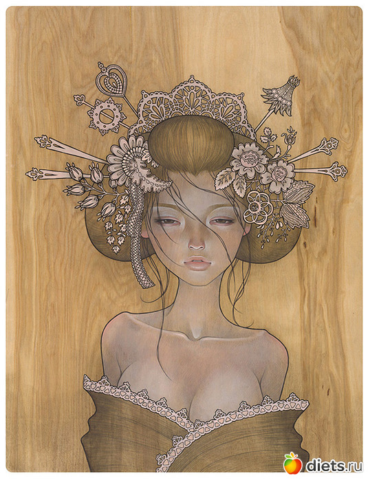 На творчество Одри Кавасаки большое влияние оказала манга, отсюда в ее работах девушки с большими глазами, а также комиксы и модерн. Свои работы она создает на дереве. Техника письма темперой по деревянным плитам придает ее работам теплоту и глубину. Ее резкие графические изображения в сочетании с природной фактурой древесины вызывают тревогу и загадочность. Все работы Одри Кавасаки пропитаны духом модерна и легким эротизмом. Образы невинны, но в тоже время очень соблазнительны. Точность рисунка и мягкие колористические решения также характеризуют творчество Одри Кавасаки.