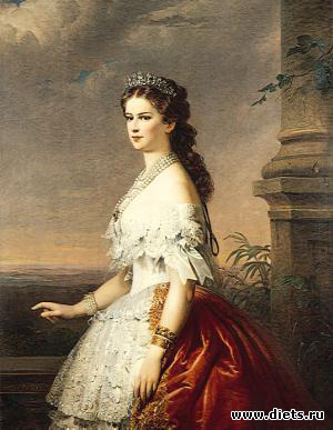Диета у императрицы тоже была особенная. На завтрак — 6 сырых яиц с солью и апельсиновый сок. На обед — вытяжка из сырых куропаток или косуль, парное молоко коров, которых она лично придирчиво выбирала (и даже возила с собой в особом вагоне, когда путешествовала). В ее бытность при австрийском дворе появились соковыжималки в виде механических прессов, при помощи которых повара выдавливали для нее сок не только из овощей и фруктов, но и из дичи или свежей телятины. На ужин — вновь сырые яйца и апельсиновый сок. Слабость она имела лишь к венским пирожным (которые взвешивали для нее на аптекарских весах) и баварскому пиву.
