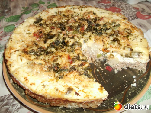Перемолоть мясо, лук, чеснок, посолить, поперчить, добавить яйцо. Замочить геркулес в молоке, как разбухнет, добавить в фарш. Смазать форму раст. маслом, выложить фарш, сделав небольшие бортики. На фарш выкладываем капусту, перец, фасоль(у меня были замороженные, прямо не размораживая), и в духовку! Пока запеканка печётся, натираем сыр, взбиваем яйца с молоком, режем зелень. Как только запеканка готова, заливаем омлетом, посыпаем зеленью и сыром, и опять в духовку до румяной корочки. Приятного аппетита!!!