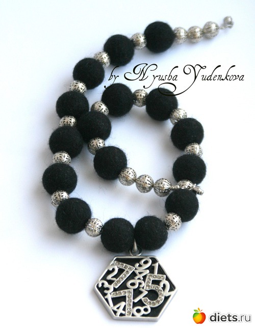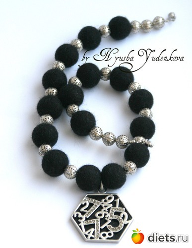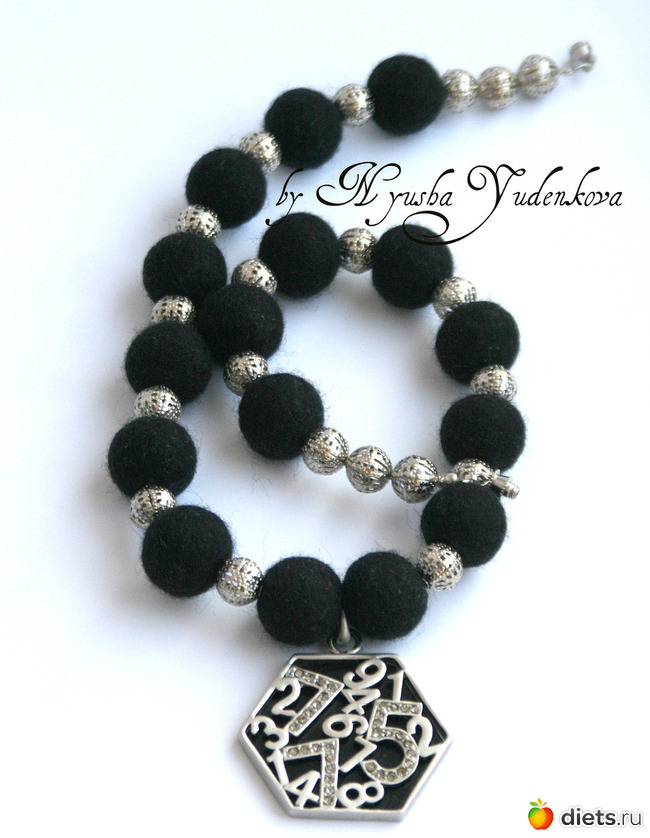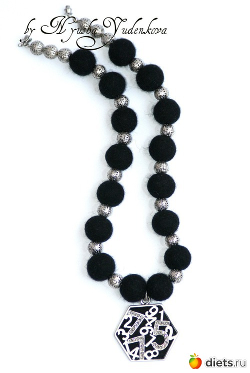 Бусы из войлока в сочетании с фурнитурой серебряного цвета. В центре располагается кулон черно-серебристого цвета с цифрами и стразами, металлический. Шерсть в бусах цвета черной южной ночи. Украшение смотрится очень стильно. Будет отличным подарком на 8 марта себе или любимой подруге. Длина изделия: 48,5 см. Возможна отправка по почте. Все нюансы обговорим в личке... Читать полностью