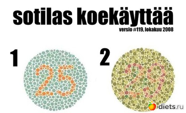 Идея теста очень простая. Новобранец смотрит на лист и называет числа, расположенные внутри кружков. Если новобранец видит числа во всех шести кружках — он здоров. Если будущий солдат не видит числа сразу в нескольких кружках, его следует проверить на цветовую слепоту — дальтонизм. А если новобранец не видит цифры только в одном кружке, то у него, возможно, могут развиться следующие проблемы...