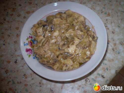 Обед: запеканка из горбуши с грибами 200 г. = 426 ккал.