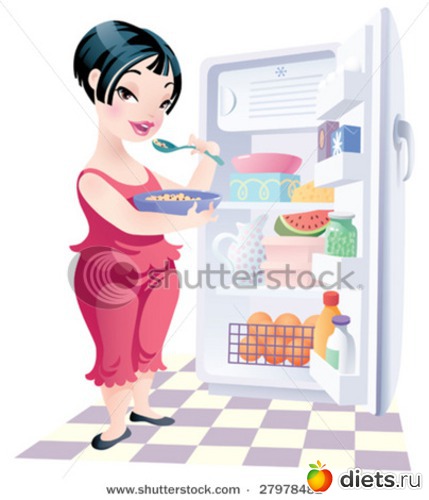 •Еще один прием отучения стресс-едока от ночной еды: нужно максимально затруднить ему путь на кухню. Например, поставьте поперек кухонной двери тяжелую гладильную доску, перед ней пару стульев, а на них таз с водой. И не считайте этот совет шуткой: представьте-ка, каково каждый раз, когда захотелось стянуть из холодильника кусочек чего-нибудь вкусненького, разбирать такую баррикаду?! А если дело происходит ночью и все приходится делать в темноте и тихо-тихо, чтобы не перебудить весь дом?