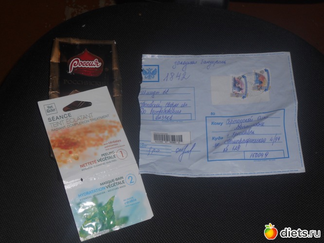 Леночка, спасибо тебе огромное за вкусную шоколадку и за сюрприз внутри посылки))) Масочка для лица от от "Ив Роше"