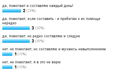 нет, не помогают, но составляю и мучаюсь невыполнением