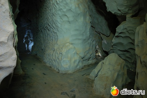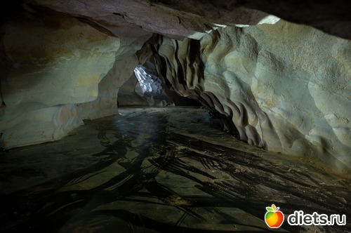 Потом руководитель отправился на разведку - дальше оказалось воды по грудь, значит надо плыть в лодке всем. Вот тут и началось самое интересно!) В четвертом мы сели в лодку. Руковод сел вперед на корточки (как оказалось, так садиться не надо было), я легла впереди на живот, а парень и девушка сели сзади. Сначала всё было нормально. А потом потолок начал снижаться! И через какое-то время он снизился настолько, что я застряла! А я лежала на лодке! Я не могу поднять голову, потому что слишком близко потолок! Мы не можем куда-либо сдвинуться, мы застряли! Мы скребли бортами лодки по потолку! После некоторых усилий мы преодолели эту проблему. Это был самый страшный момент!
