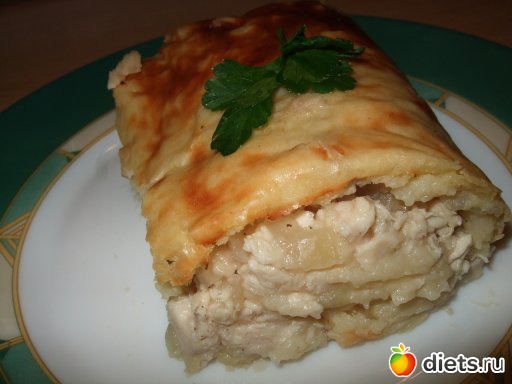 Из этих ингридиентов получается целая бадья.Так как я живу не одна и мне мужика кормить надо, я не могу питатся одной ботвой.Итак:картофель отварить как на пюре, слить воду, потолочь,посолить, поперчить, добавить 1 яйцо, муки(у меня вышло 4 ст.л.), перемешать, выстелить форму пергаментом,выложить первый слой картофеля, разровнять.Курицу(грудки)отварить,лук репчатый порезать,обжарить на 1 ст.л.растительного масла,добавть туда перекрученое мясо,посолить, поперчить, выложить на слой картофеля и сверху оставшийся картофель разровнять.Смазать верх классическим йогуртом нежирным и в духовку до зарумянивания
