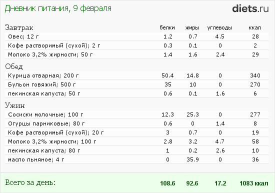 по калорийности можно добавить еще и фруктов и рыбы и каши на завтрак.