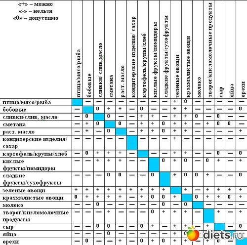 Поможет правильно организовать раздельное питание таблица совместимости продуктов.