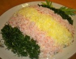 2. Справа и слева от центральной полосы – две полоски из натертых крабовых палочек.